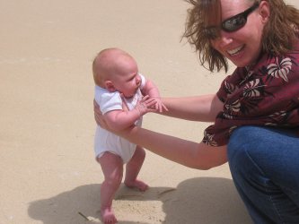 Here's Katie's first dip in the Pacific Ocean. She seemed nonplussed by the whole event. Mostly she was blinking a lot from the bright sun.